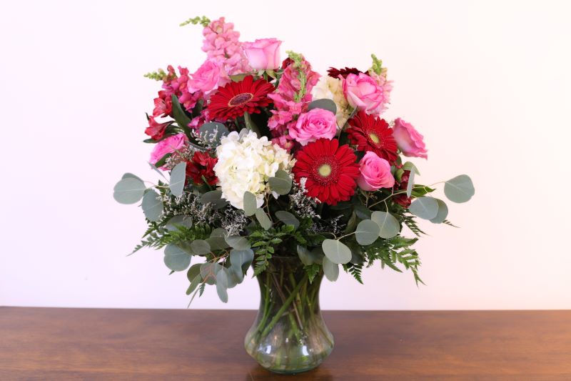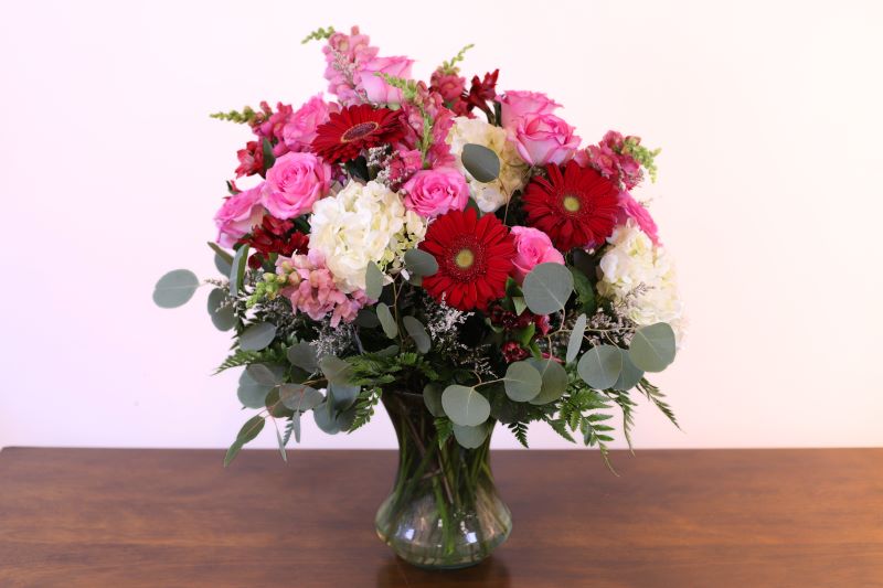 Features an abundance of the highlighted flowers and comes in a larger vase or container for an even more impressive display.